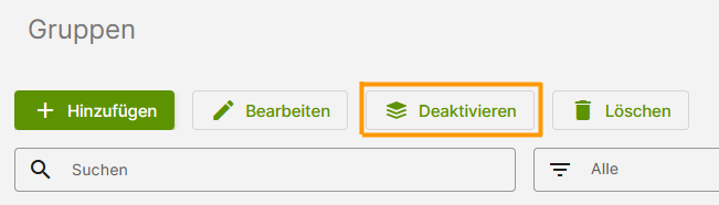 | Löschen | Hier können Sie die ausgewählte Gruppe aus dem Verwaltungsportal löschen. |
