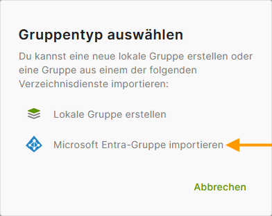 - Wähle anschließend Microsoft Entra-Gruppe importieren aus (Pfeil im Bild).