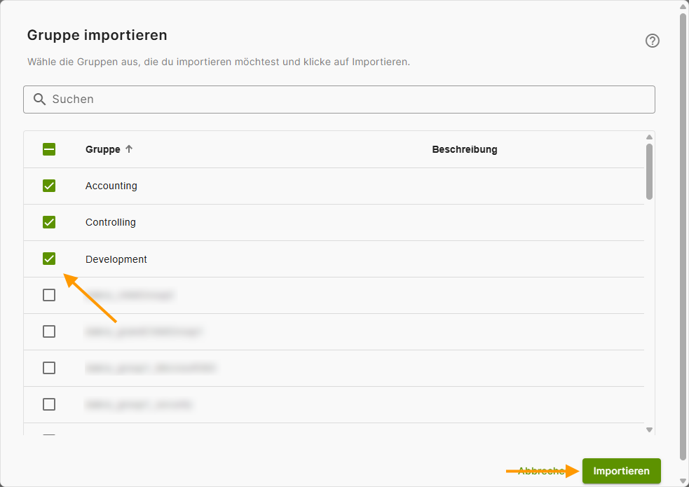 - Wähle die Gruppen aus, die du aus Microsoft Entra importieren möchtest (Beispiel im Bild).