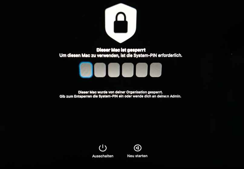 Sie können die macOS-Geräte Ihrer Nutzer/-innen bei Bedarf über das Verwaltungsportal sperren. Das Gerät wird dadurch in einen sicheren Zustand versetzt und die Nutzer/-innen haben dann keinen Zugriff mehr. Zum Entsperren der Geräte ist eine spezielle Freischalt-PIN erforderlich.