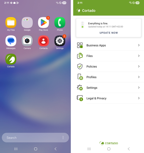 - The Cortado app provides users with an overview about all apps and policies. You can find more information about the Cortado app here.