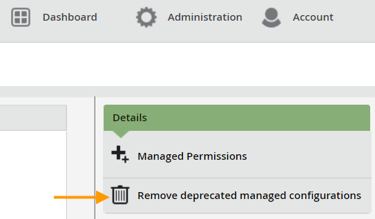 - Under Details click on Remove deprecated managed configurations (arrow in illus.).